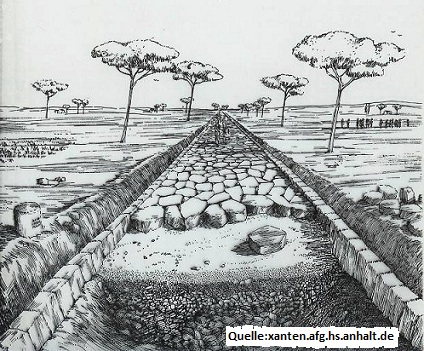 Unterbau sorgte für Festigkeit; eine leichte Fahrbahnwölbung (“dorsum”)